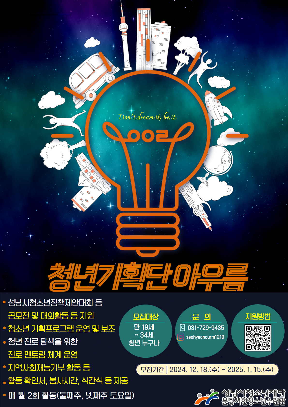 2025 성남시청소년재단 분당서현청소년수련관 청년기획단 아우름 모집