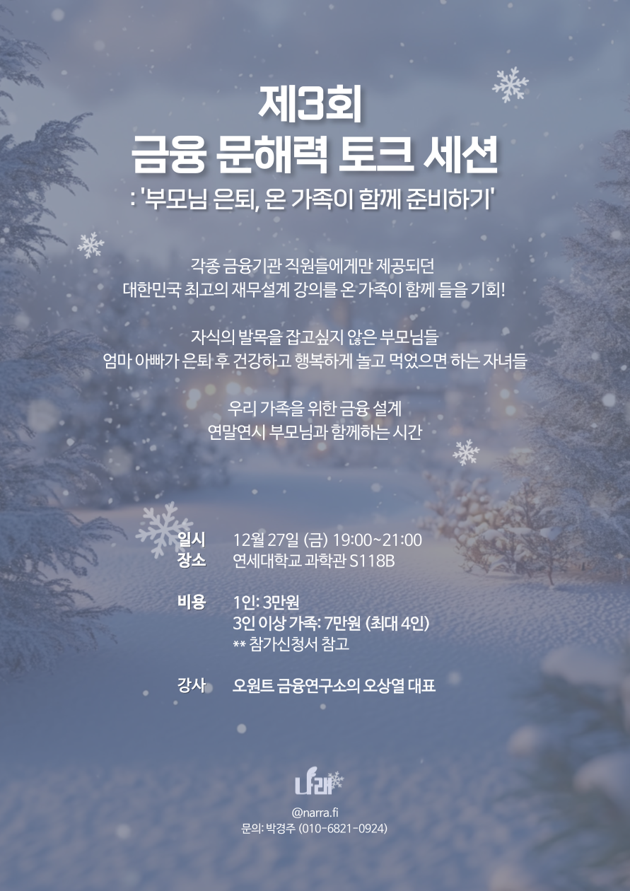 🚨금융감독원, 시중은행, 보험사 등 각종 금융기관 직원들에게만 제공되던 대한민국 최고의 재무설계 강의를 가족과 한께 들을 기회!🚨
