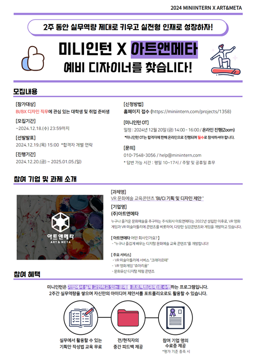 [미니인턴X아트앤메타] 메타버스 속 예술의 한계를 넘다! VR 미술 교육 콘텐츠 로고 디자인에 도전해보세요! (~12/18)