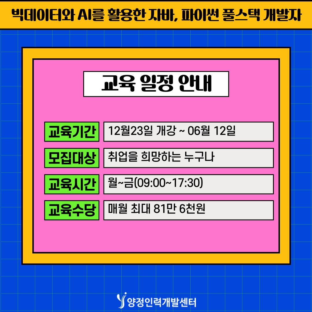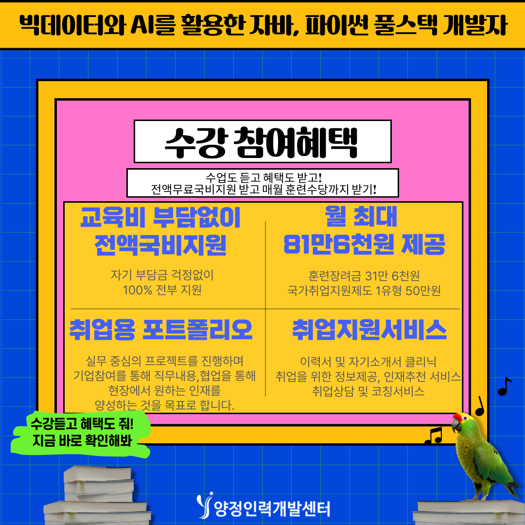 💻 국비 100% 지원 + 훈련장려금 월 최대 816,000원 지급!