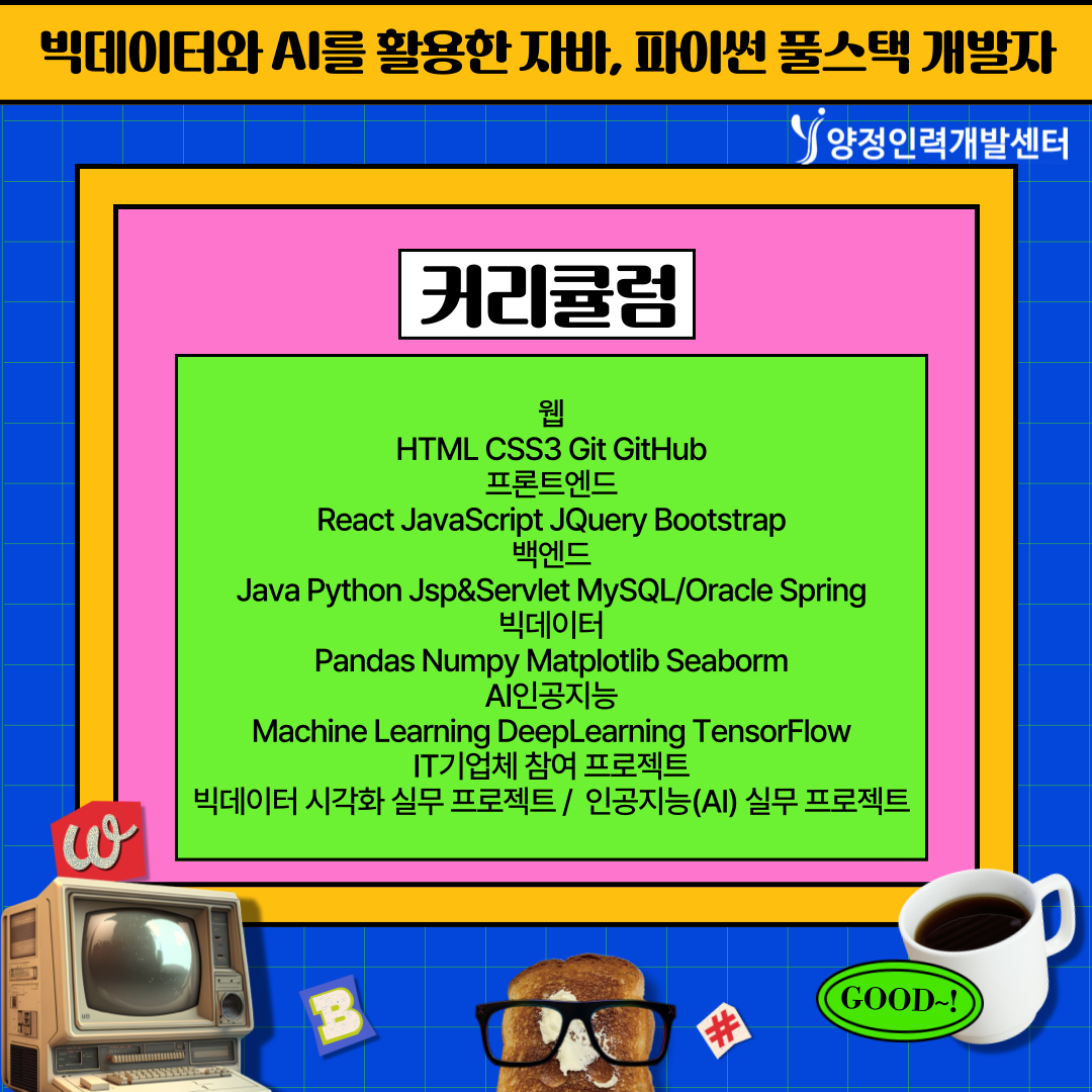 AI, 빅데이터, 클라우드, 풀스택 개발 등 디지털 신기술을 배우고 실무 중심의 IT 전문가로 성장하세요!