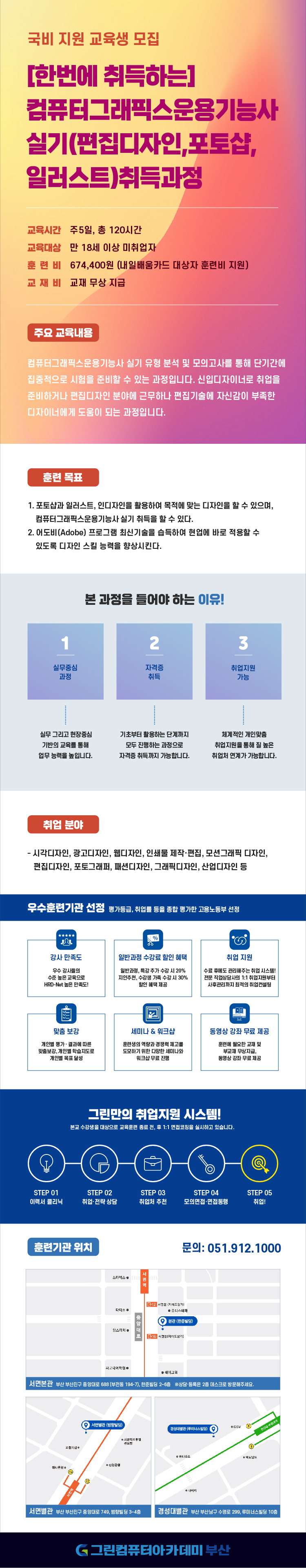 ■ 과정명 : [한번에 취득하는] 컴퓨터그래픽스운용기능사 실기(편집디자인,포토샵,일러스트)취득및 취업과정
