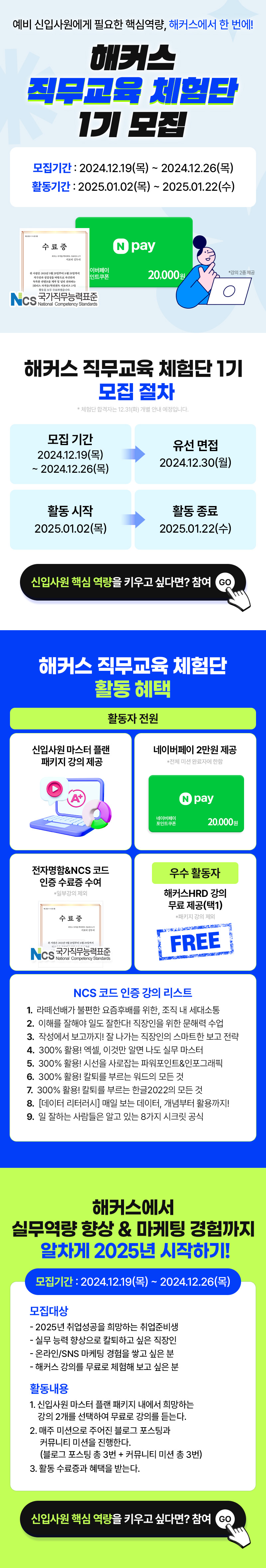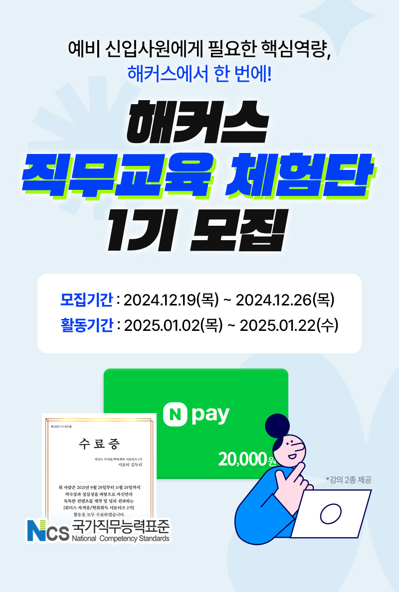 해커스 직무교육 체험단 1기 신청하러 가기(클릭) >