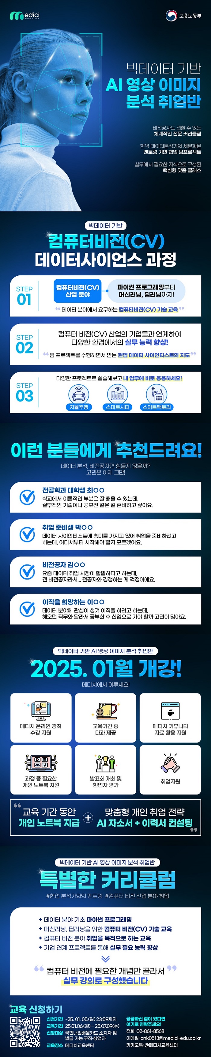 [메디치교육센터]컴퓨터비전(CV) AI영상이미지분석 무료취업교육