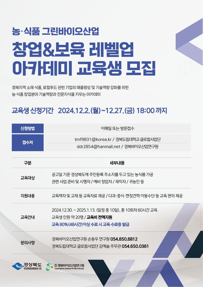 경북도립대학교 산학협력단(글로컬사업단), 경북바이오산업연구원