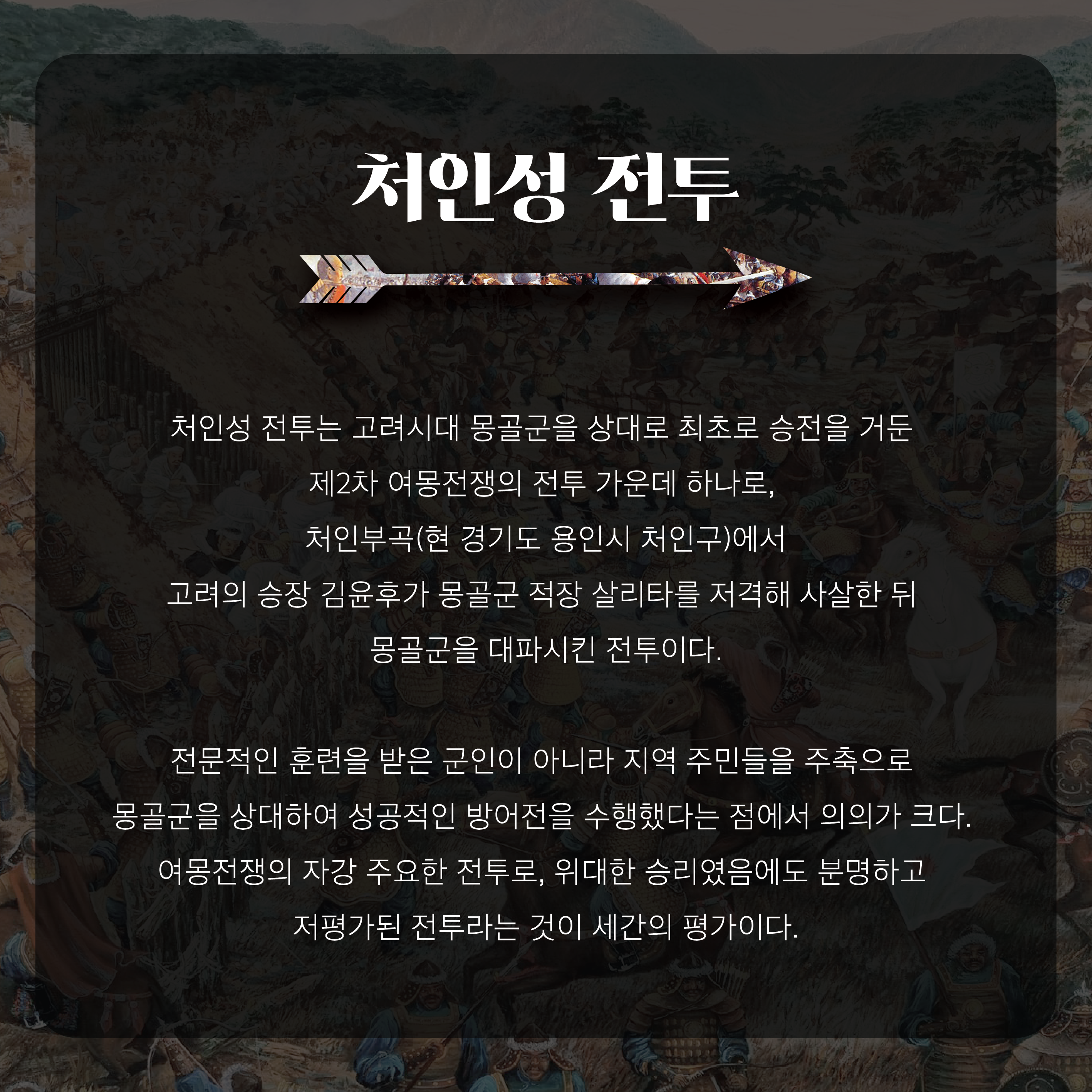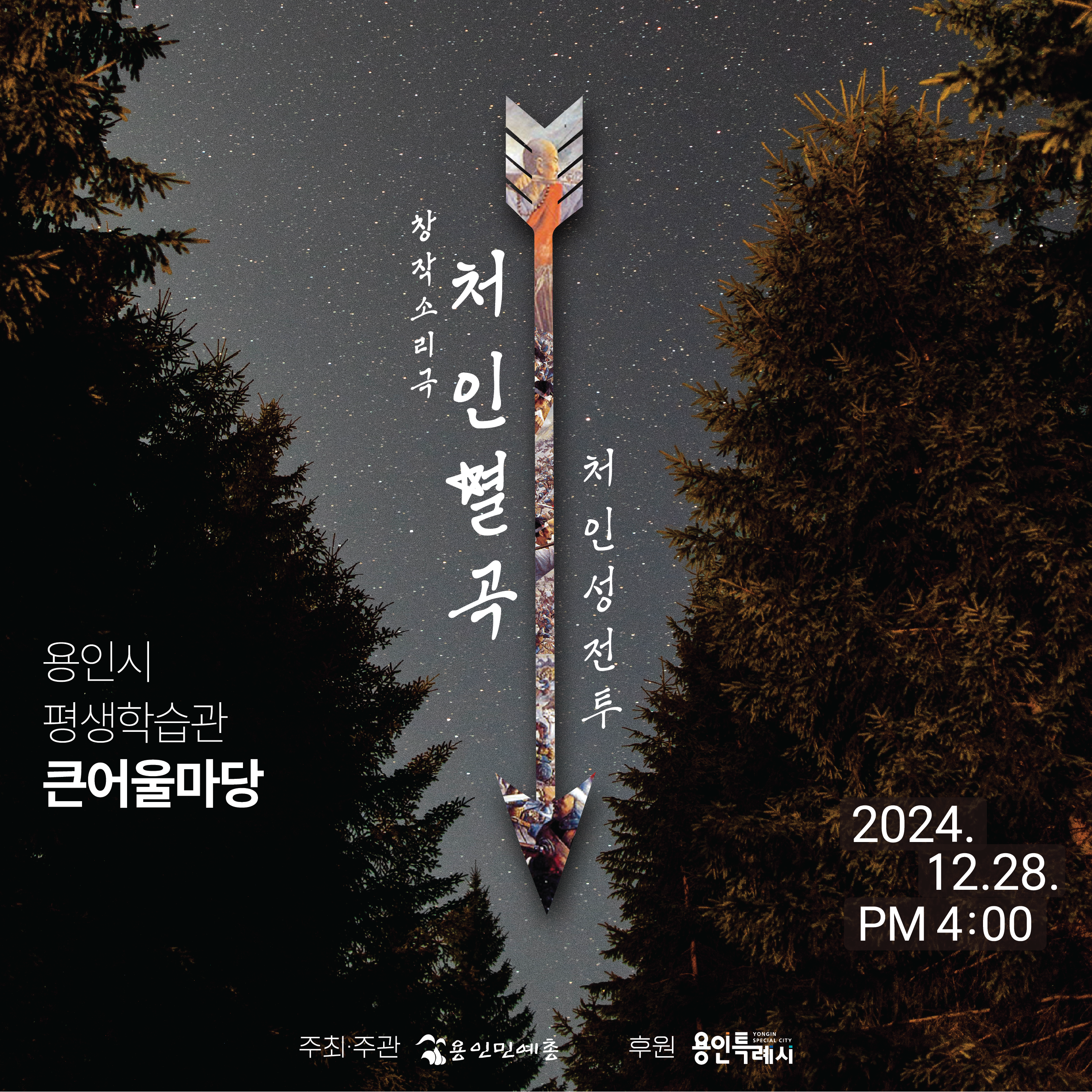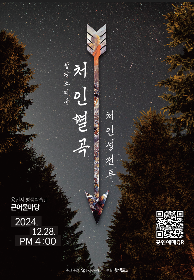 용인민예총에서 오는 12월 28일에 처인성 전투를 모티브로 한 창작소리극 <처인별곡(處仁別曲)>을 용인지역 예술가들이 그날의 숨결을 생생히 전합니다.⚔