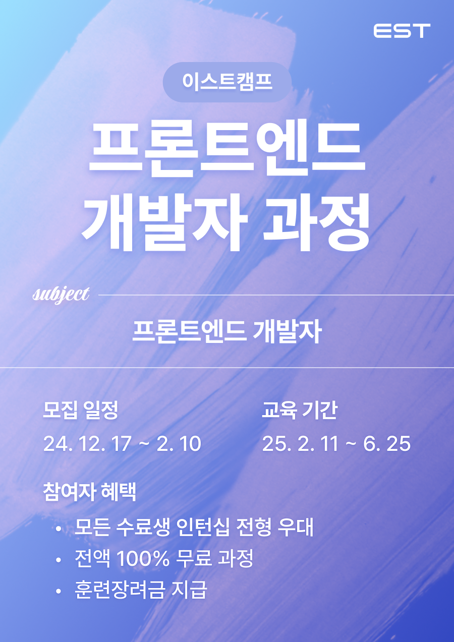 이스트소프트 10년 이상 경력의 강사진이 진행하는 실무 기반 교육과 실속 있는 커리큘럼으로 프론엔드 개발자 커리어 시작하기!