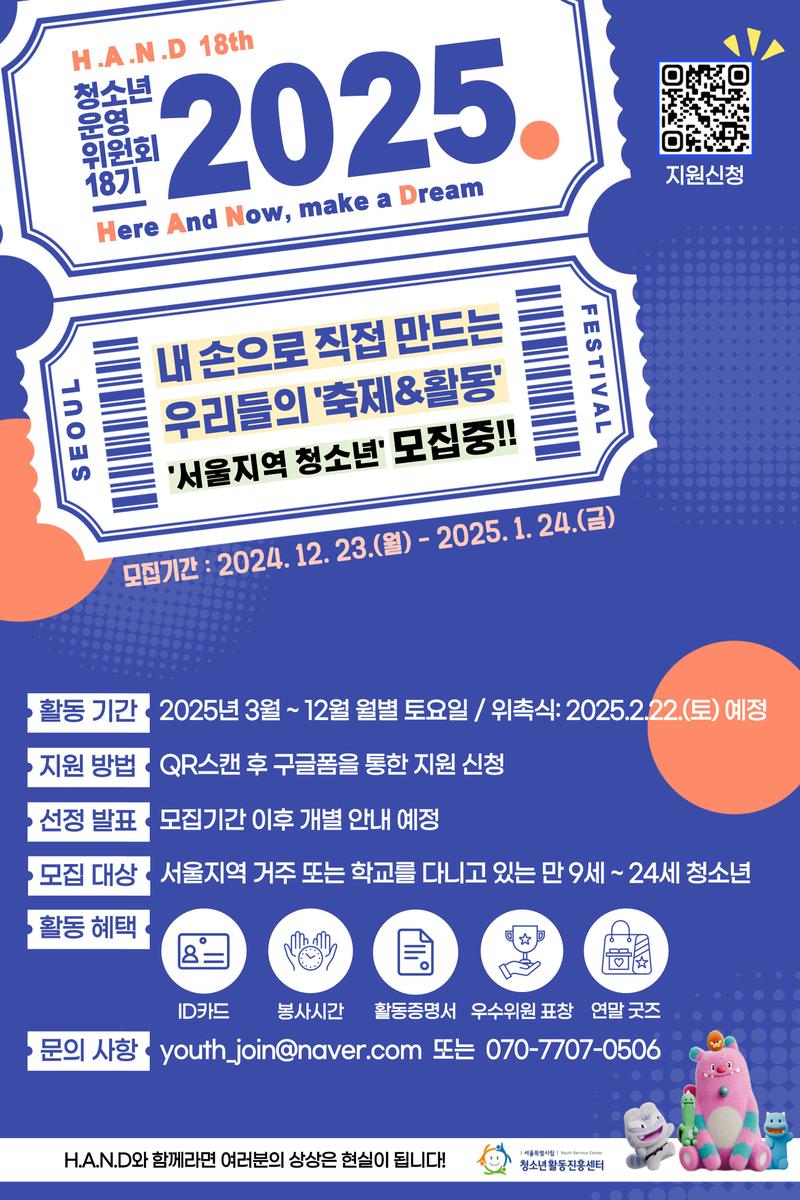 - 서울특별시립청소년활동진흥센터에서 2025년 H.A.N.D 18기를 모집합니다!!