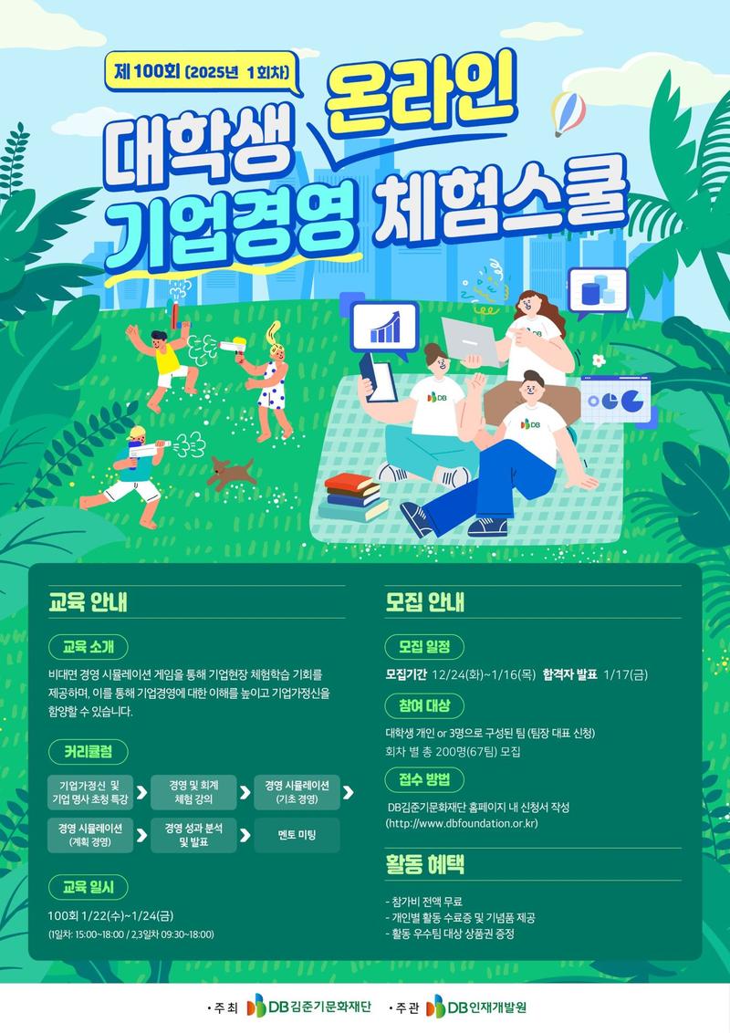 - 접수방법: DB문화재단 홈페이지(링크) 공지사항의 모집공고에서 교육참가 신청서 작성