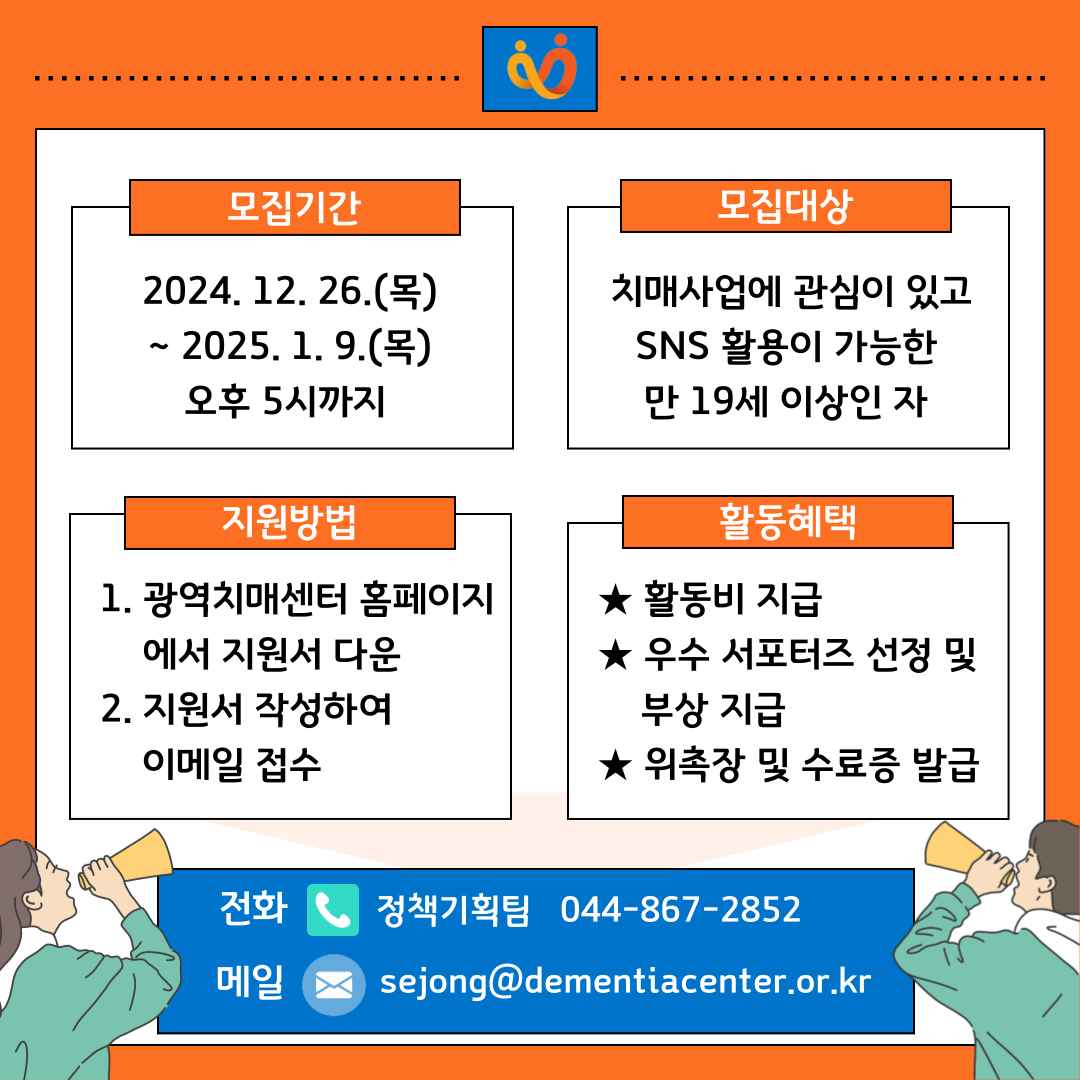 세종광역치매센터 2025 SNS 서포터즈 8기 모집 안내