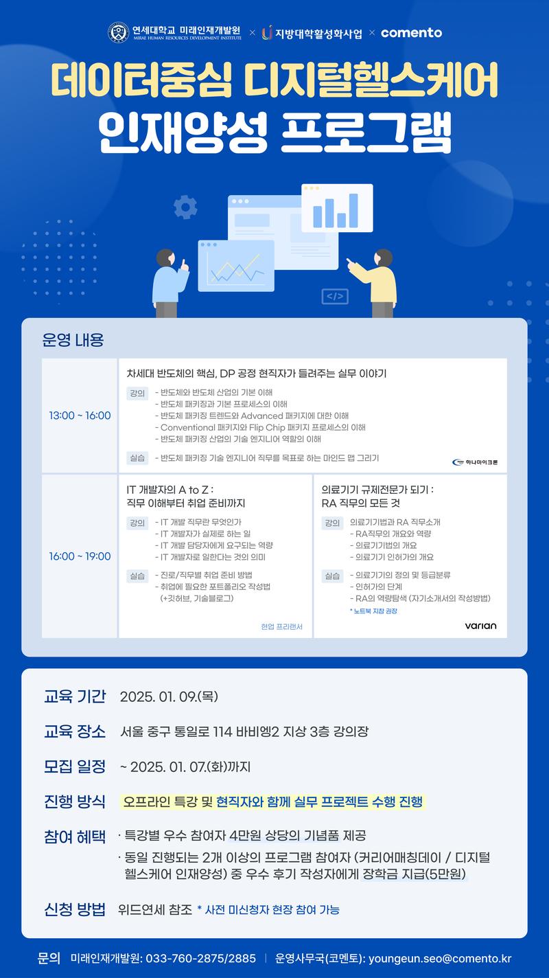○ 타이틀 : [연세대학교 미래캠퍼스] 데이터중심 디지털헬스케어 인재양성 프로그램