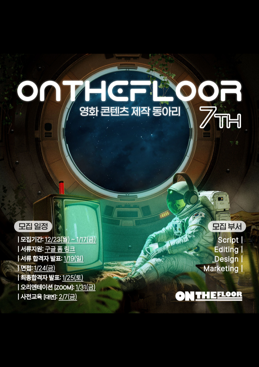 *영화 콘텐츠 기획 크루 <On The Floor>는 대학생들로 구성되어 자치적으로 운영되며 정치 및 종교, 시민 단체와는 관련이 없습니다.