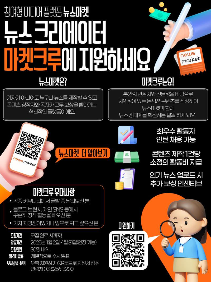 🖊️ 모집 방법 / 문의 : 뉴스마켓 연락처(☎ 033-256-3200)