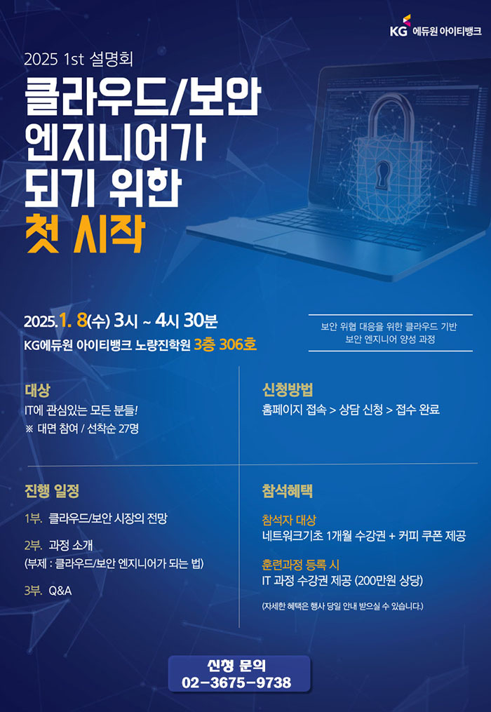 15:00 ~ 15:30 (30분) - 2025 클라우드 / 보안 시장의 전망 및 채용 동향 , 취업자 현황