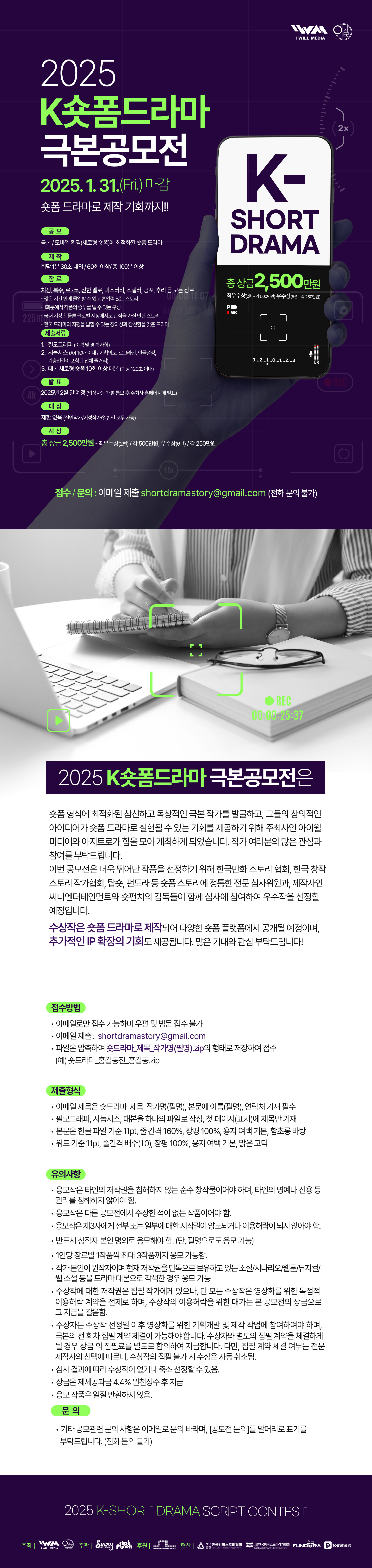 2025 K숏폼 드라마 극본 공모전 (~25/1/31)