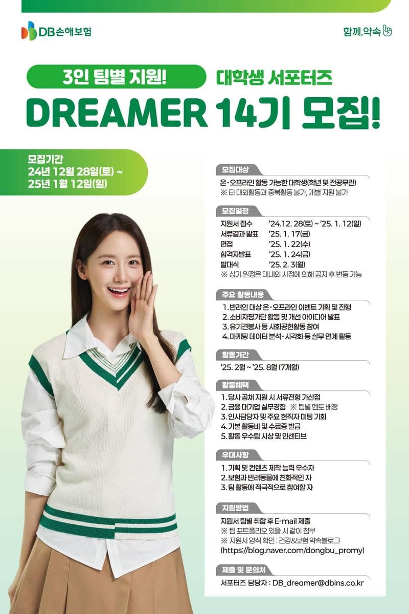 - DB손해보험 서포터즈 담당자 : DB_dreamer@dbins.co.kr
