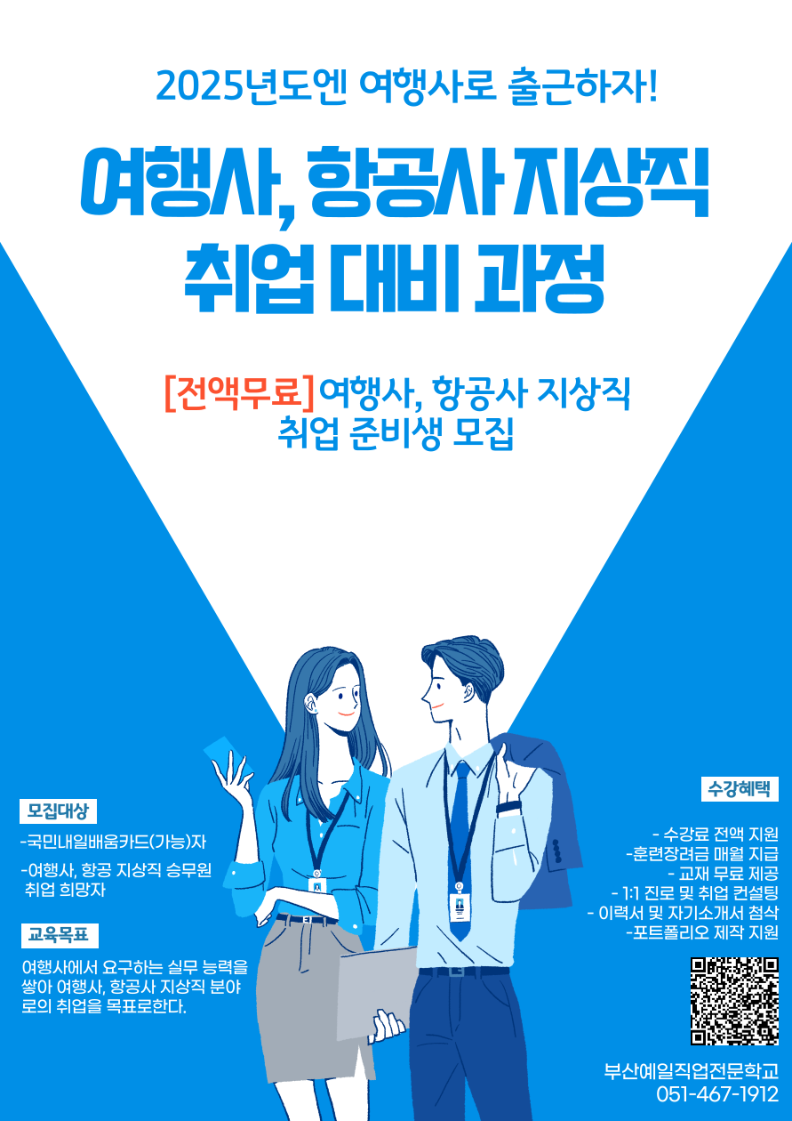 2025년 여행사, 항공사 지상직 승무원 분야로 취업하고싶다면? 전액무료로 취업 대비하자!