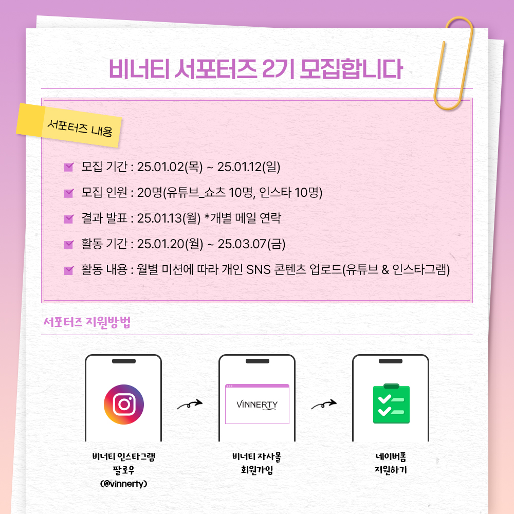 비너티 서포터즈_비너스 2기 에 참여해 주세요.