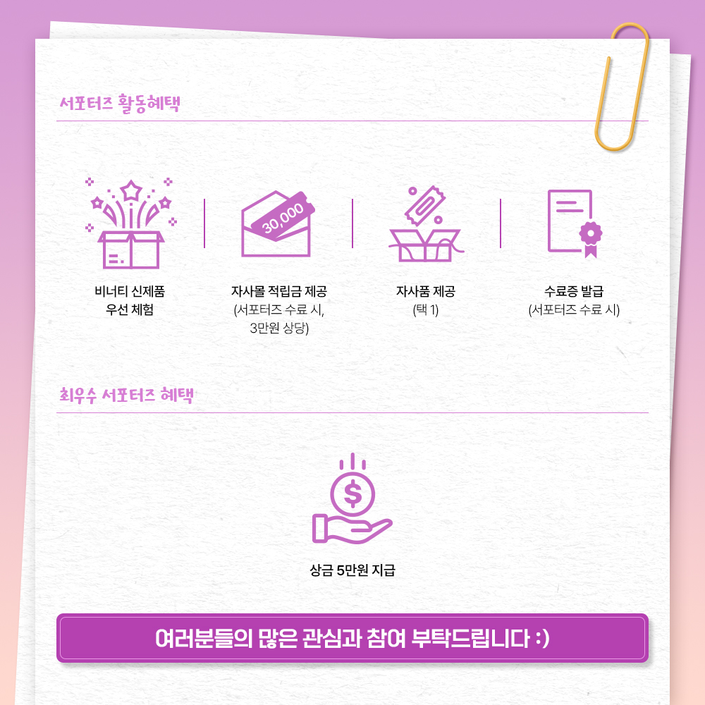 비너티 서포터즈_비너스 2기 참여해 주시면