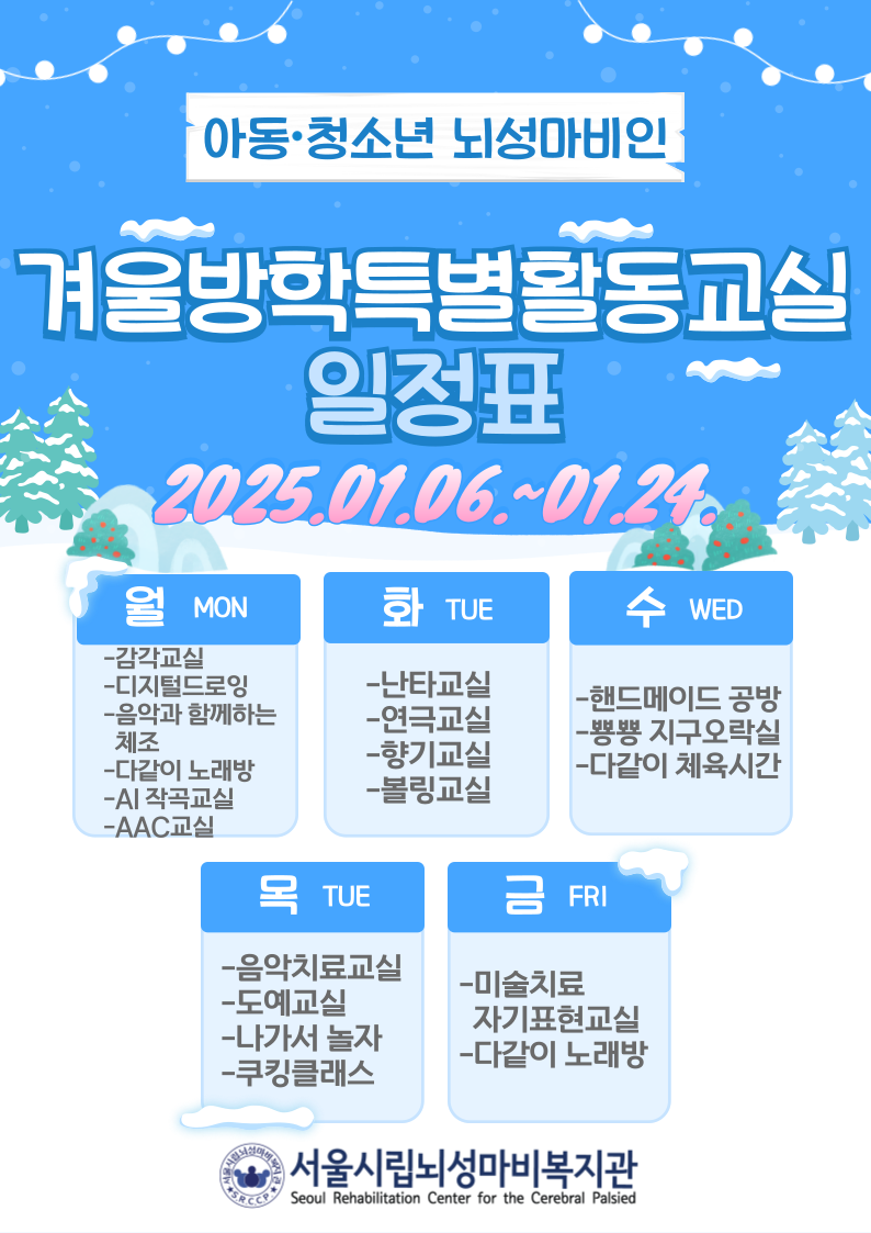 저희 복지관에서는 아동·청소년 뇌성마비인들의 겨울방학특별활동교실을 진행하려 합니다.