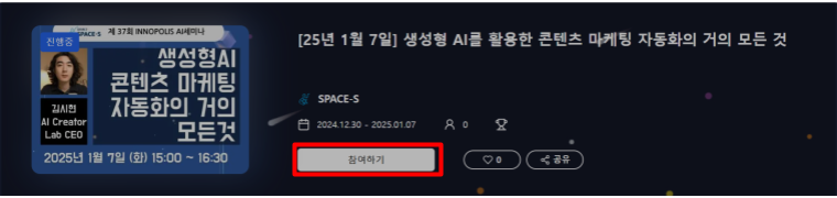 회원 가입 후 상단 [참여하기] 버튼을 클릭하시면 세미나 등 다양한 정보를 제공해 드립니다.