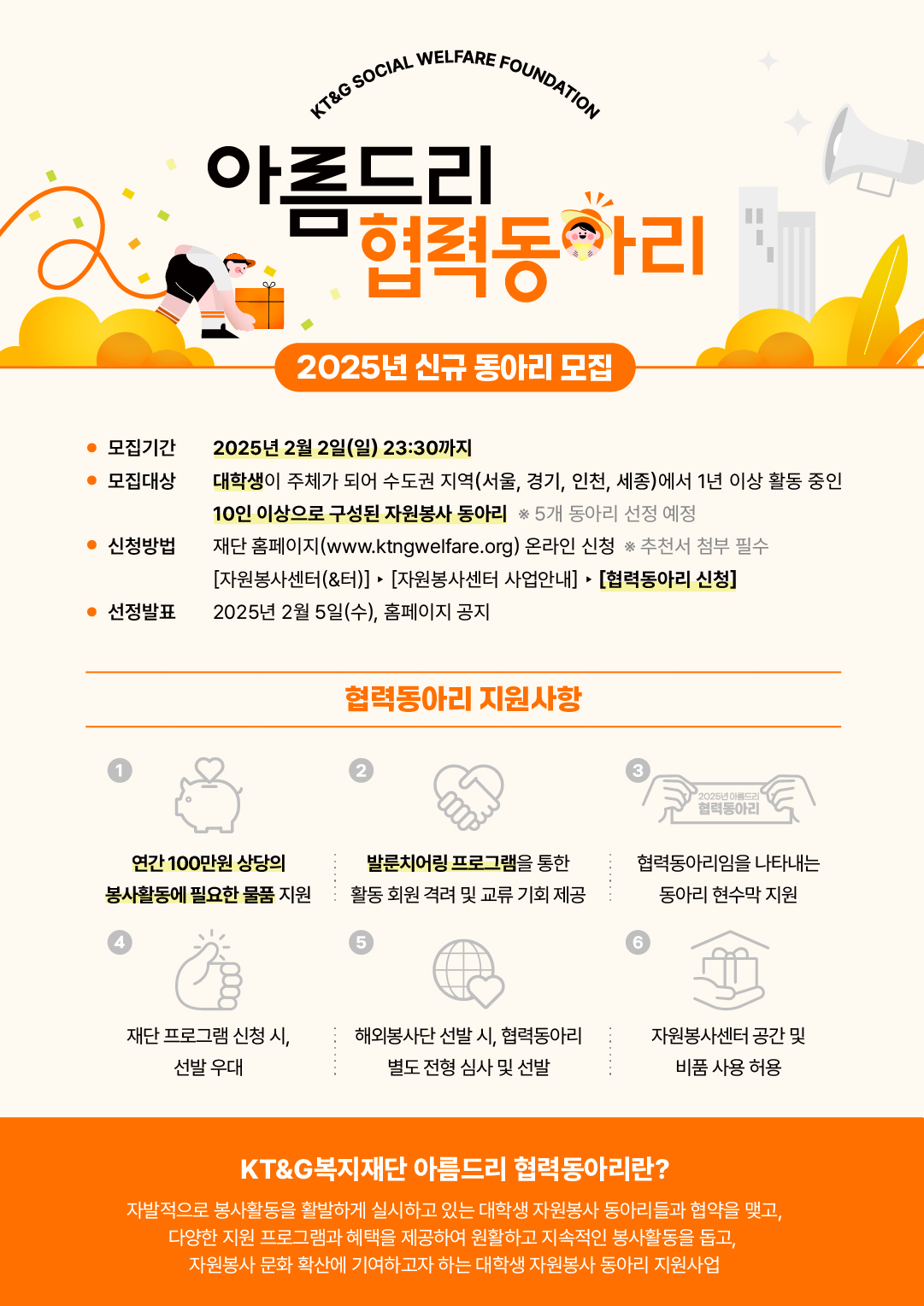 2025년 KT&G복지재단과 함께 할 신규 협력동아리를 모집합니다!