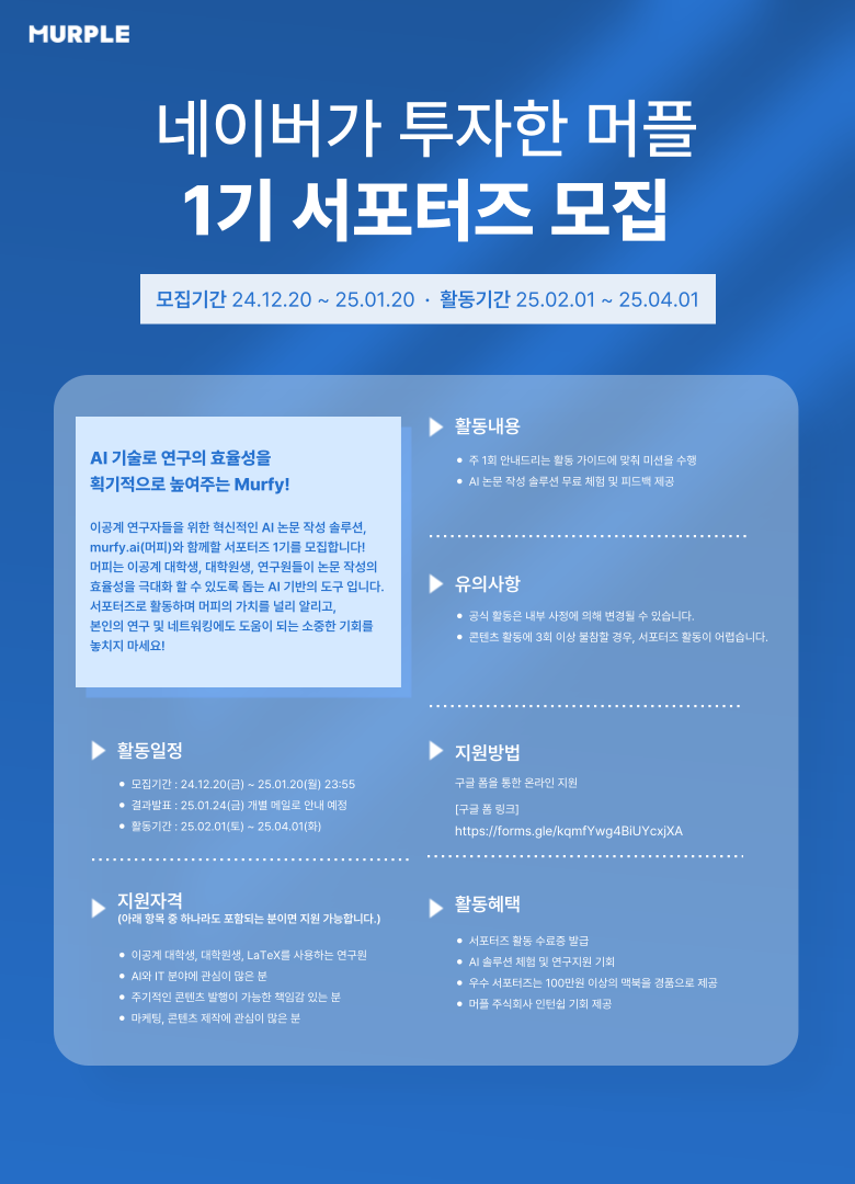 [MURPLE] 네이버가 투자한 머플 서포터즈 1기 모집