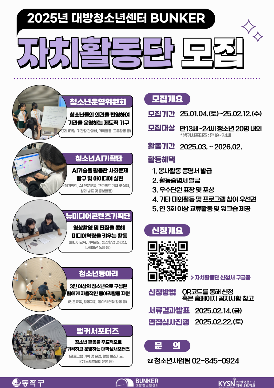 [2025년 대방청소년센터 자치활동단 신규단원 모집]