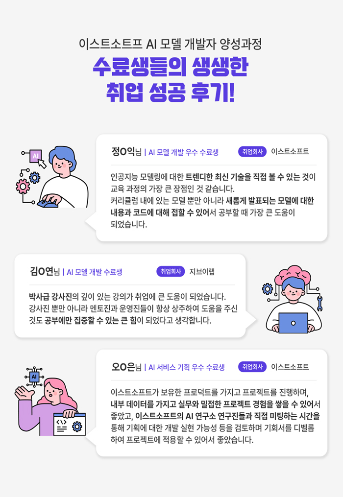 훈련과정 : [선도기업] 이스트소프트 채용 연계형 AI(머신러닝,딥러닝, LLM) 개발 부트캠프