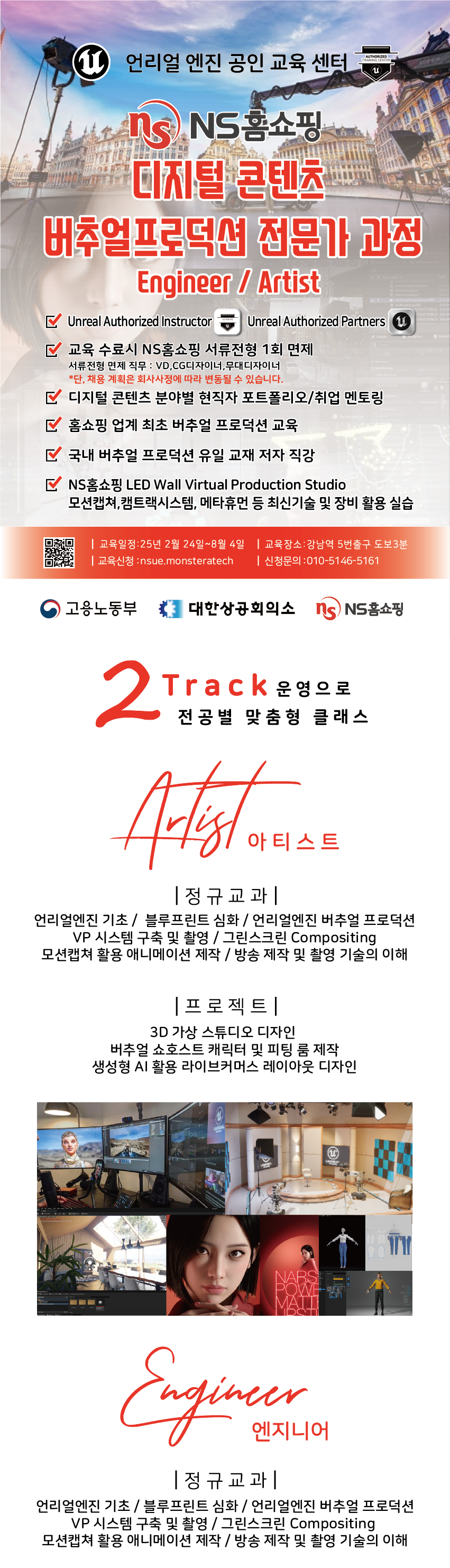 아티스트 트랙: 방송 제작이나 영상 편집 경험이 있거나, 가상 스튜디오나 메타휴먼 등 최신 기술을 활용한 작업에 관심 있는 분! 생성형 AI를 활용한 그래픽 콘텐츠 제작에 흥미가 있는 분!