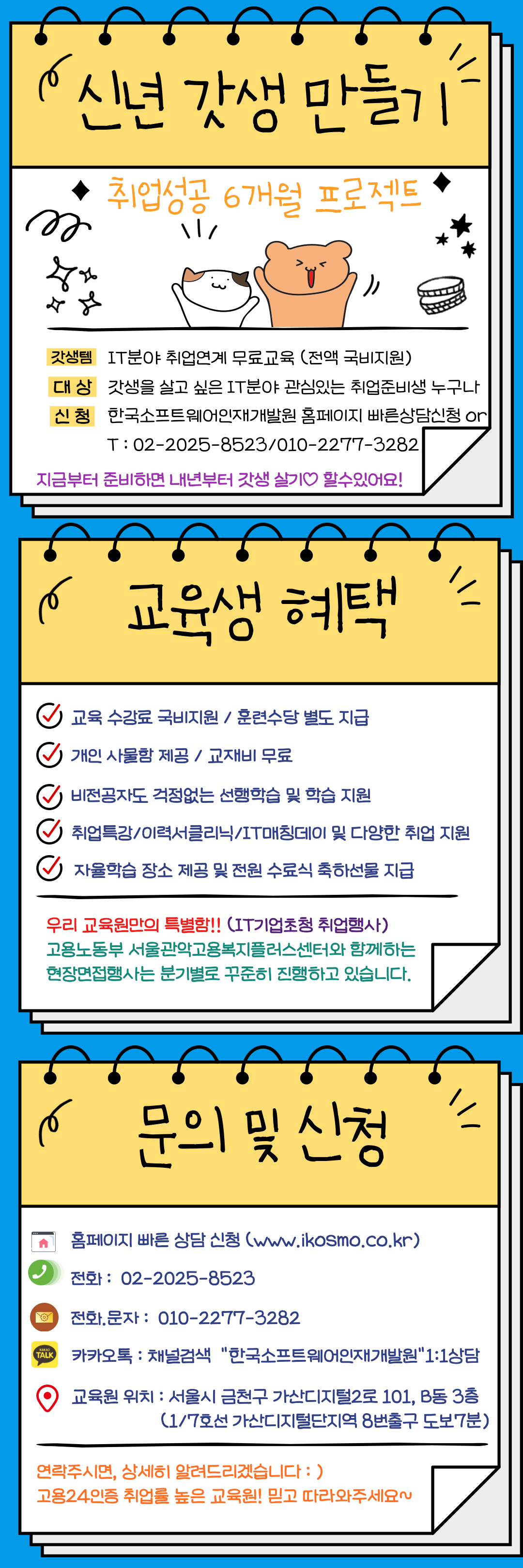 ▶ 교육 기간: 2025.01.22.~2025.07.17. (6개월 취업 연계 과정)