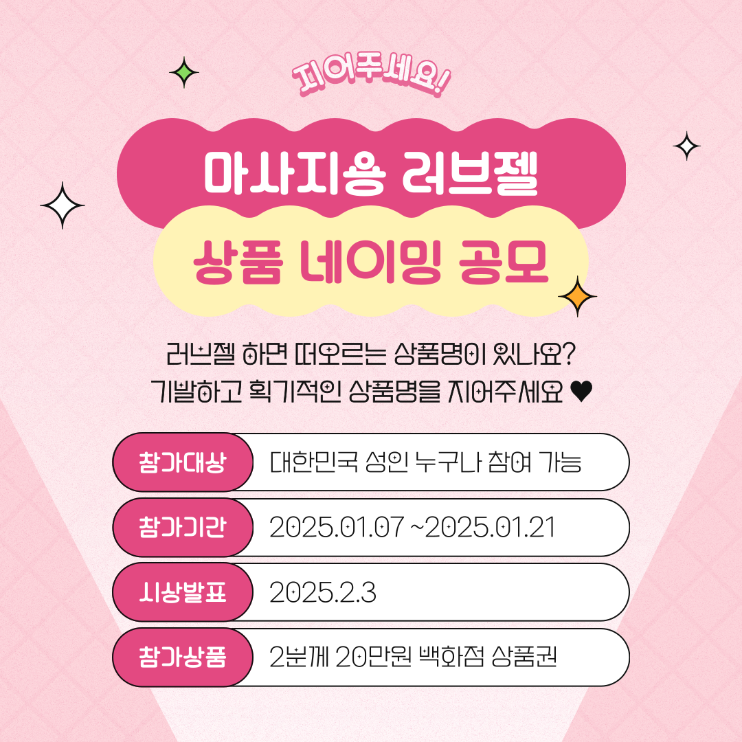 - (주)디디하이브 개발 중인 러브젤 상품 네이밍 공모