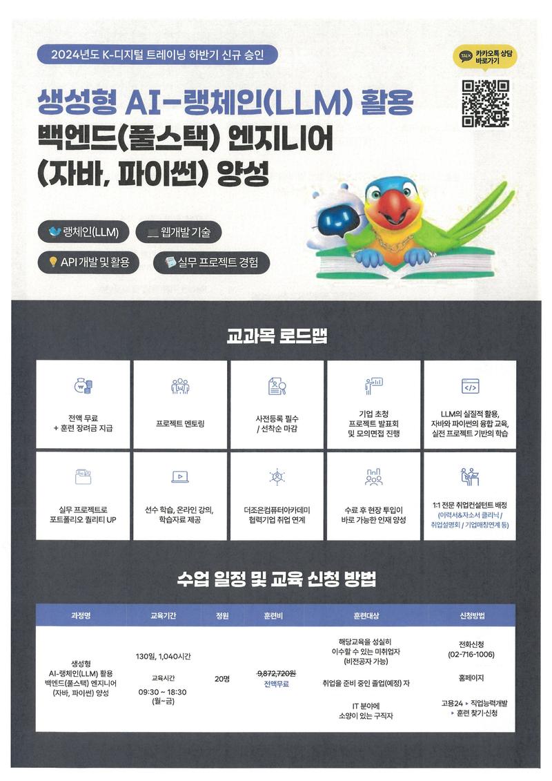 생성형 AI-랭체인(LLM) 활용 백엔드(풀스택) 엔지니어(자바, 파이썬) 양성