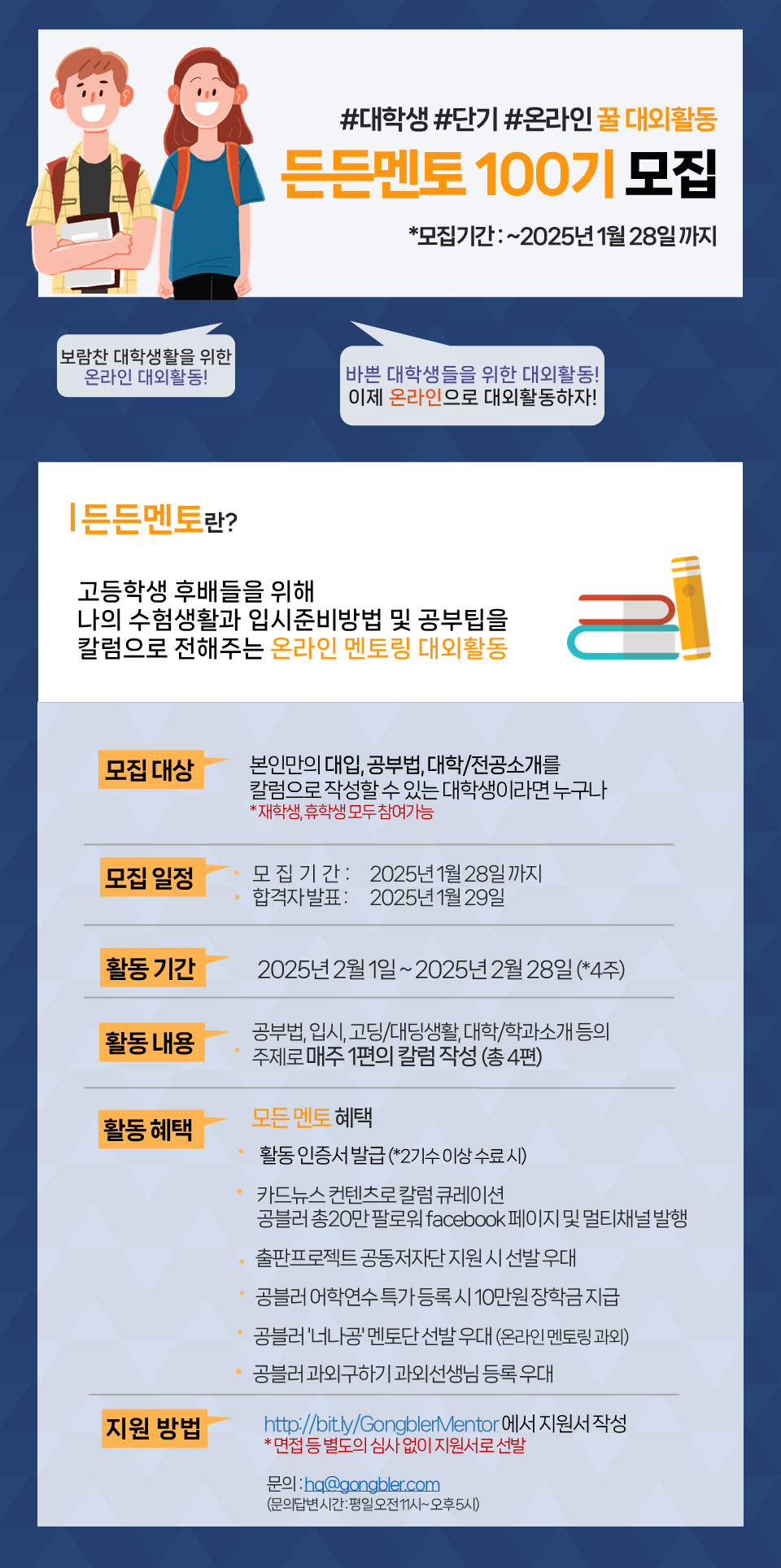 [공블러] 단기 온라인 멘토링 대외활동, 든든멘토 100기 모집 (~1/28)