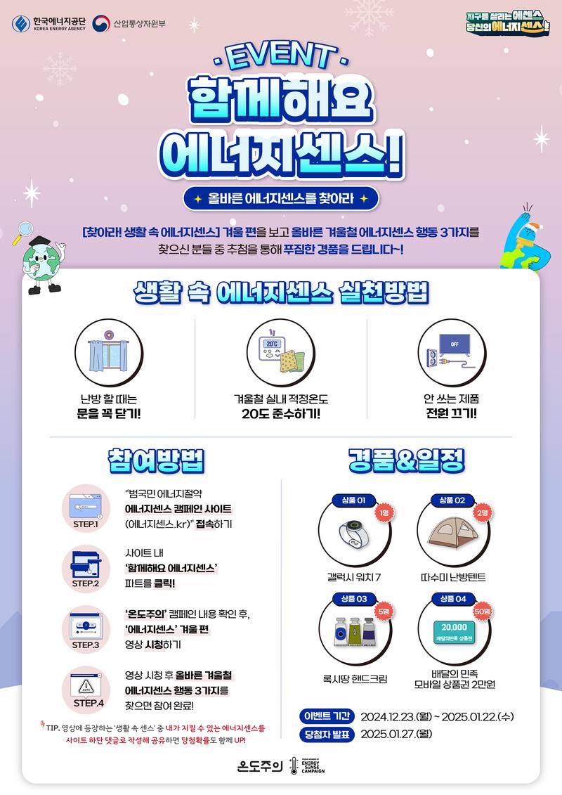 4. 영상 시청 후 올바른 겨울철 에너지센스 행동 3가지를 찾으면 참여 완료!