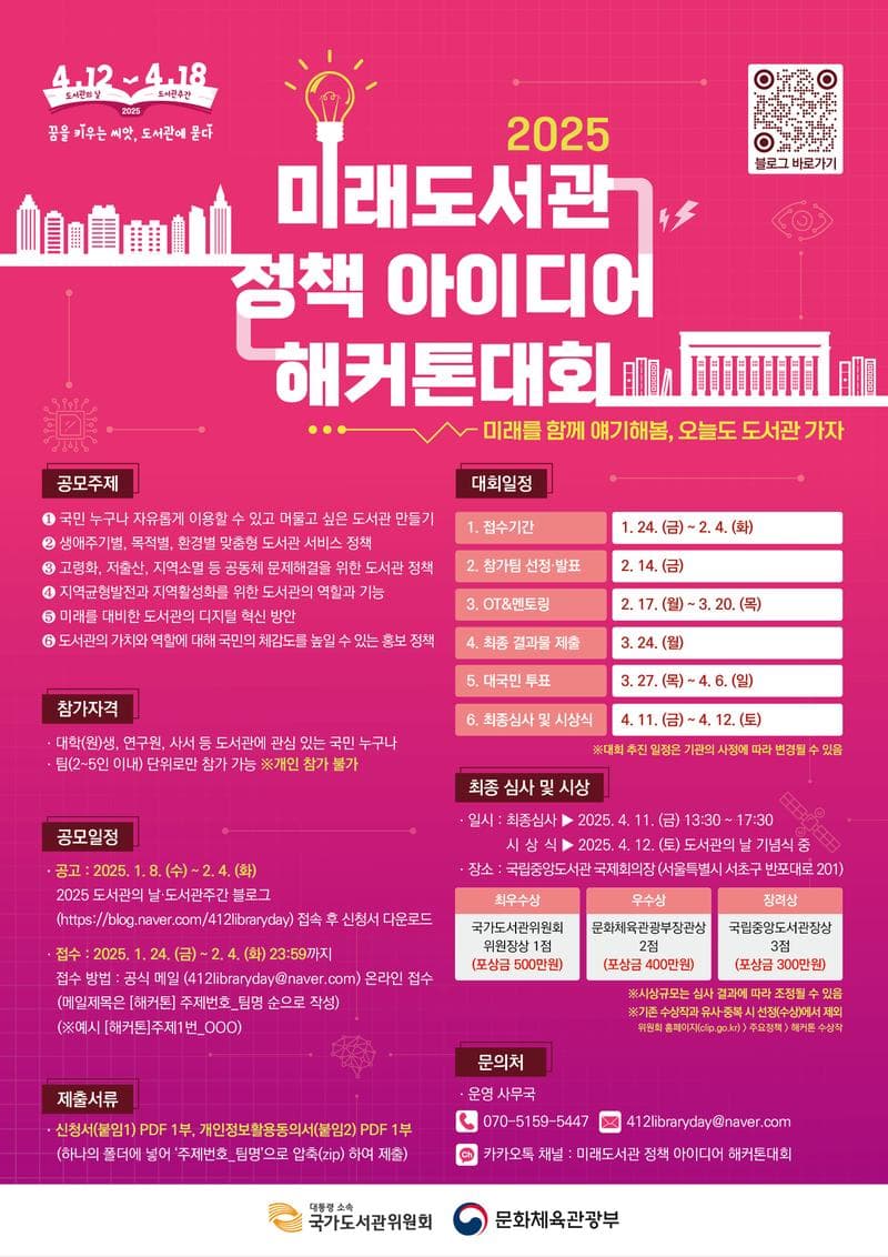 - 카카오톡 채널 : ‘미래도서관정책아이디어해커톤대회’ 검색