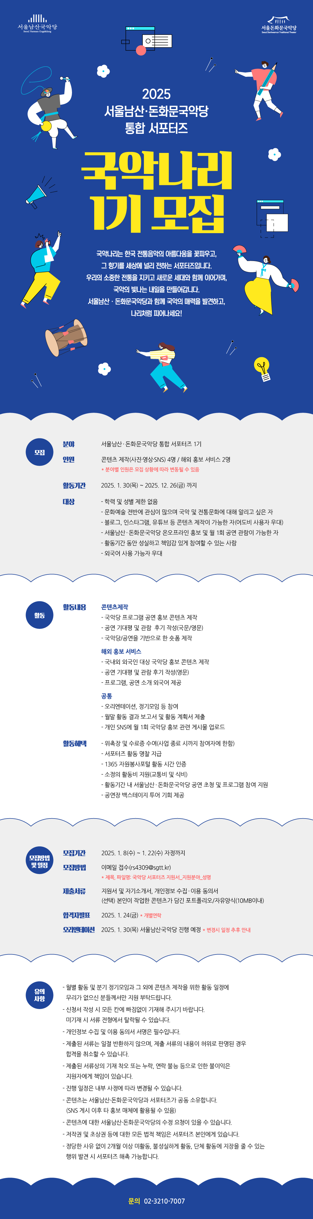 - 카드뉴스, 숏폼, 웹툰 등 제작된 콘텐츠는 서울돈화문국악당·서울남산국악당 SNS에 게재 예정(일부)