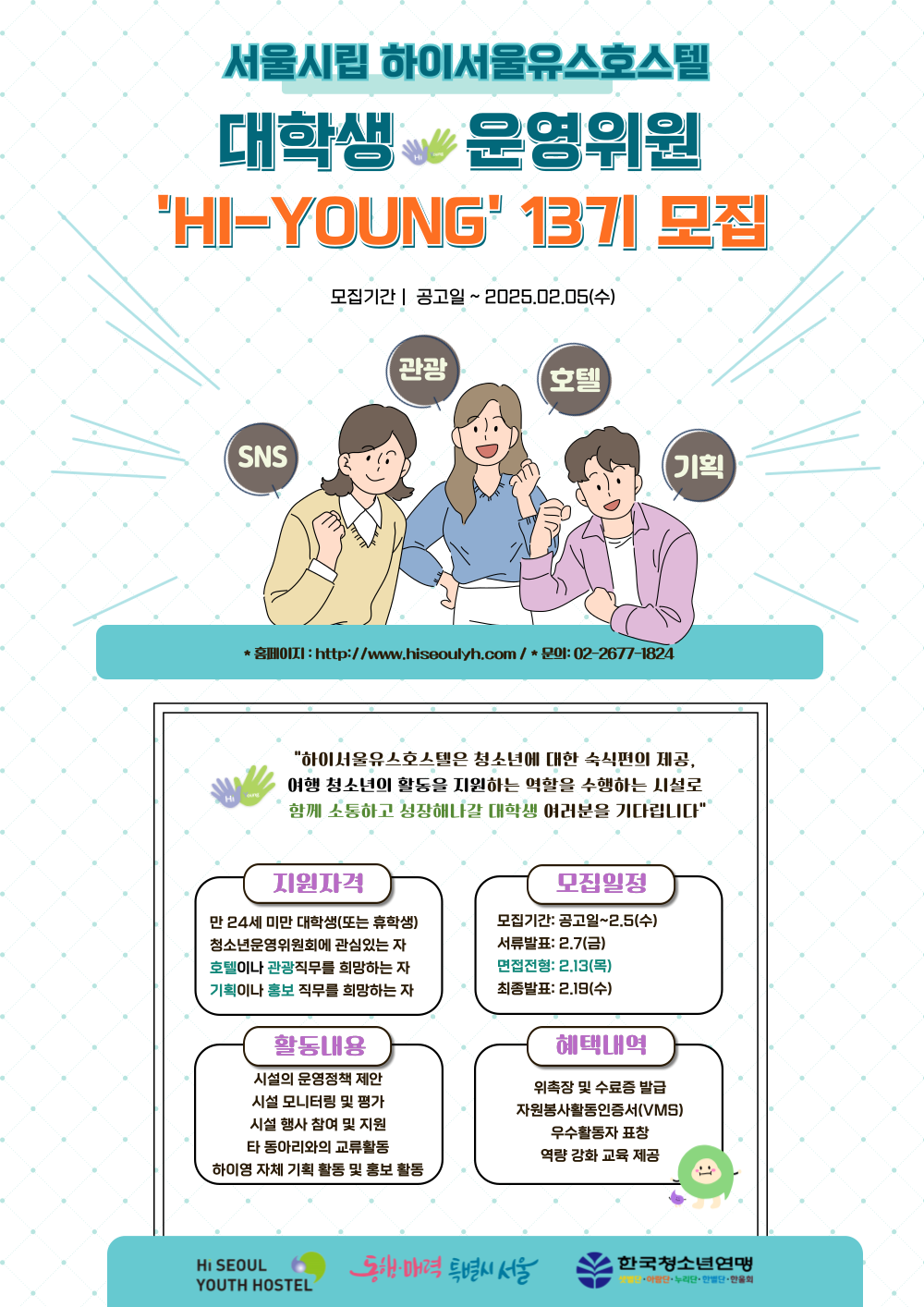 시립하이서울유스호스텔 'HI-YOUNG (하이영)' 대학생 운영위원회 13기 모집