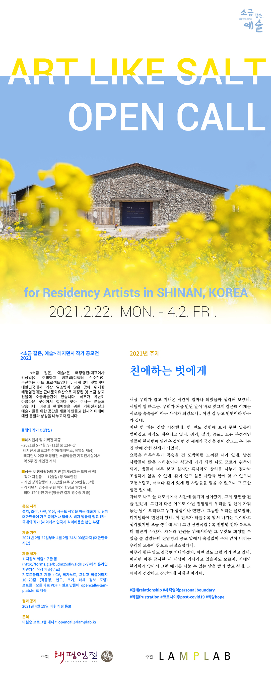 <소금 같은, 예술> 레지던시 작가 공모전 2021