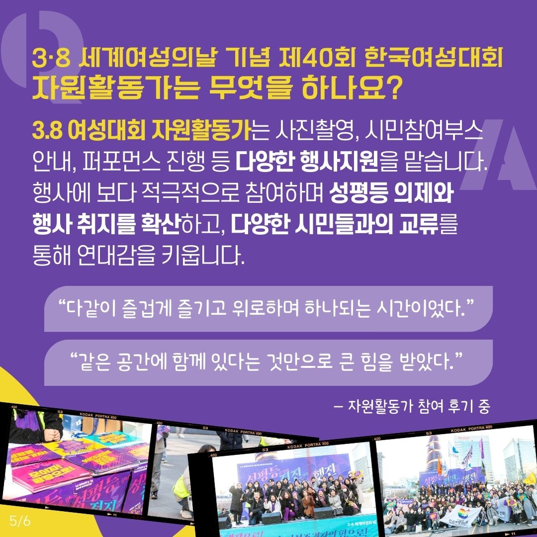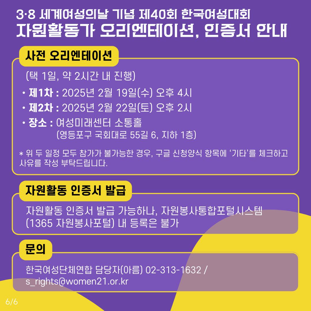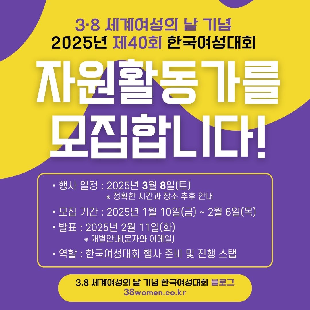 세계여성의 날 기념 2025년 제40회 한국여성대회 자원활동가를 모집합니다!!