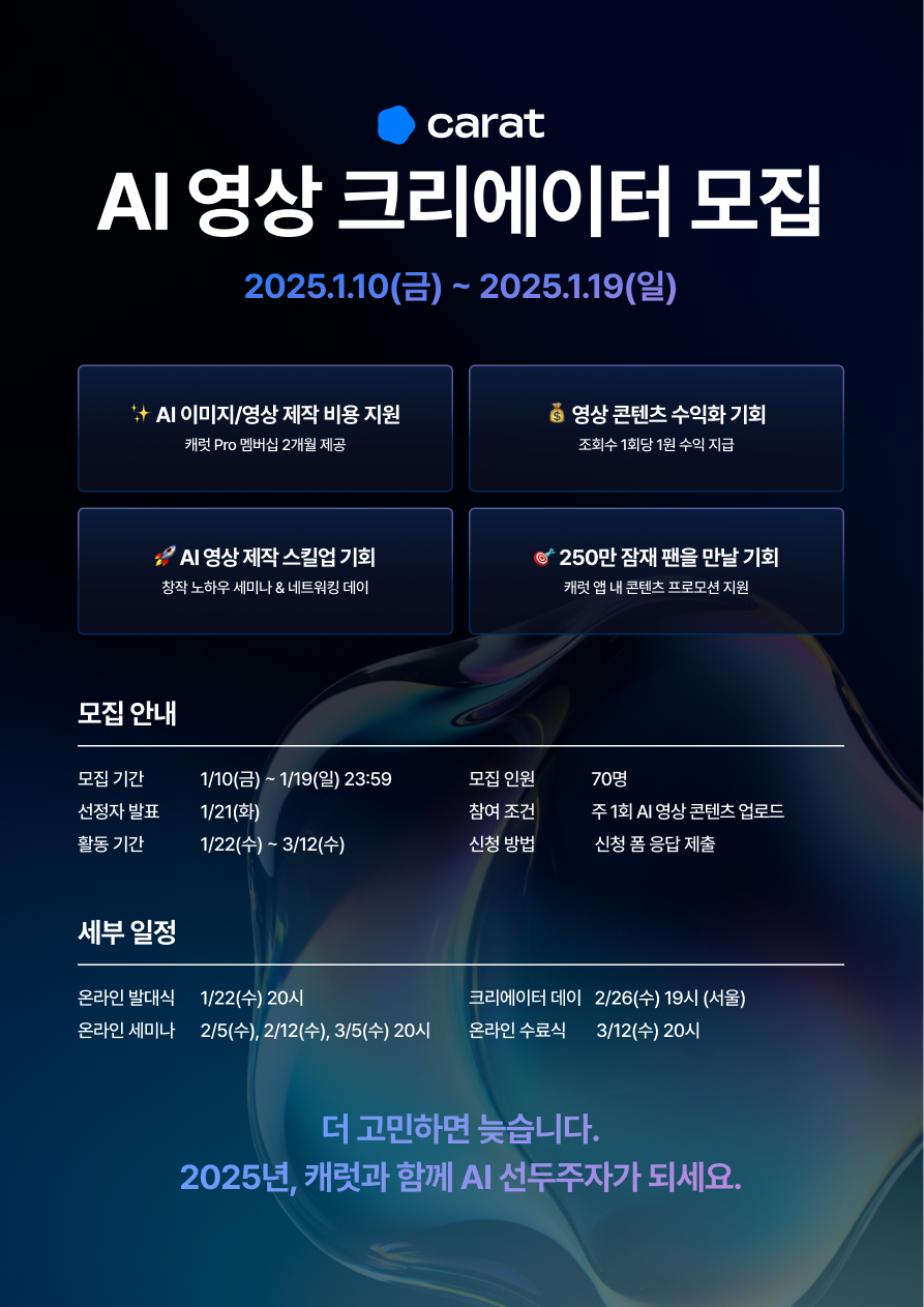 🎬 AI 영상 제작에 관심 있는 분들 주목! 캐럿에서 AI 영상 크리에이터를 모집합니다