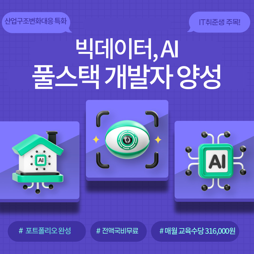 [취업유망직종] 빅데이터, 인공지능AI 풀스택 개발자 취업교육생 모집