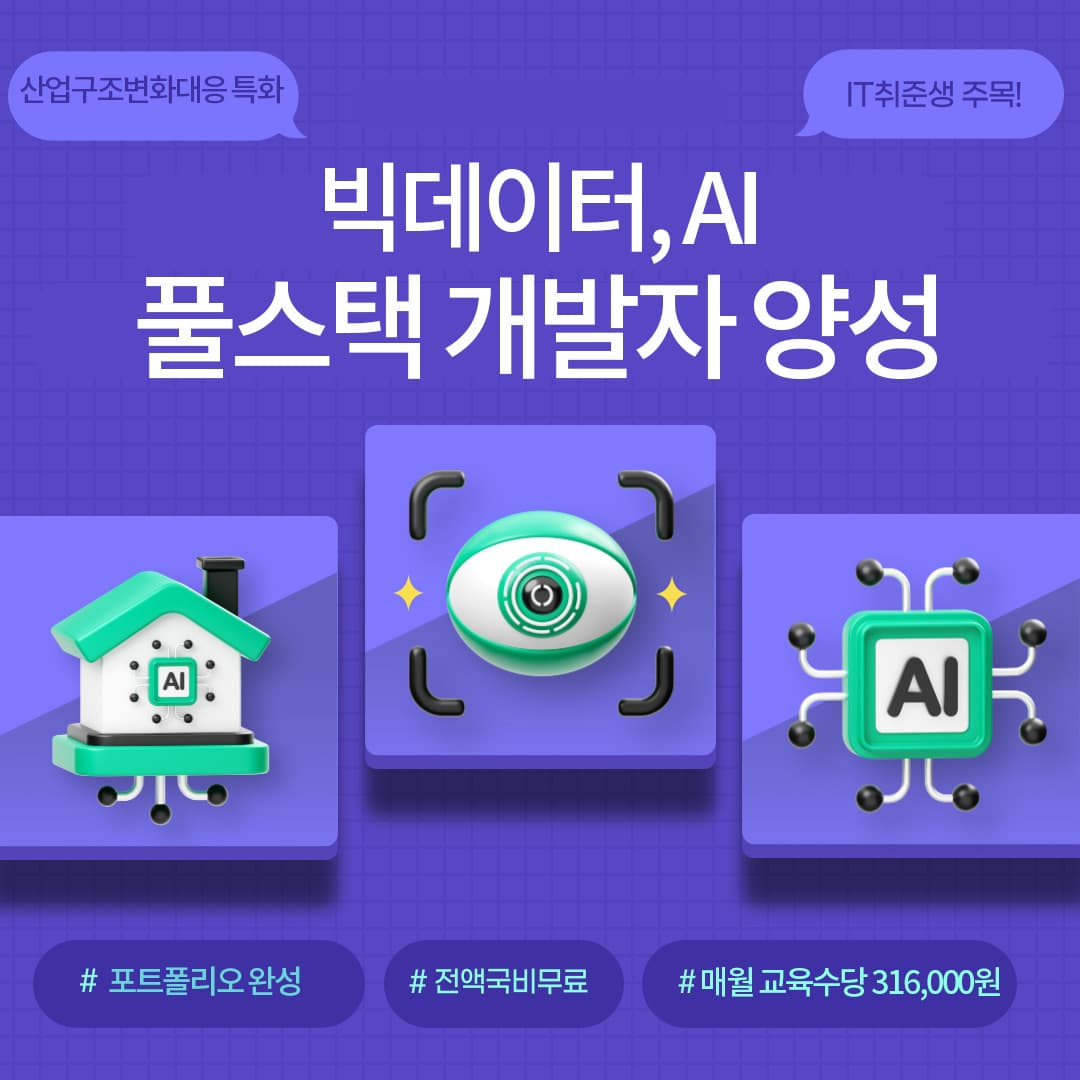 실무 중심 IT 전문가로 성장할 수 있는 최고의 기회! 빅데이터, AI, 클라우드, 풀스택 개발 기술을 마스터하고 2025년 새로운 커리어를 시작하세요.
