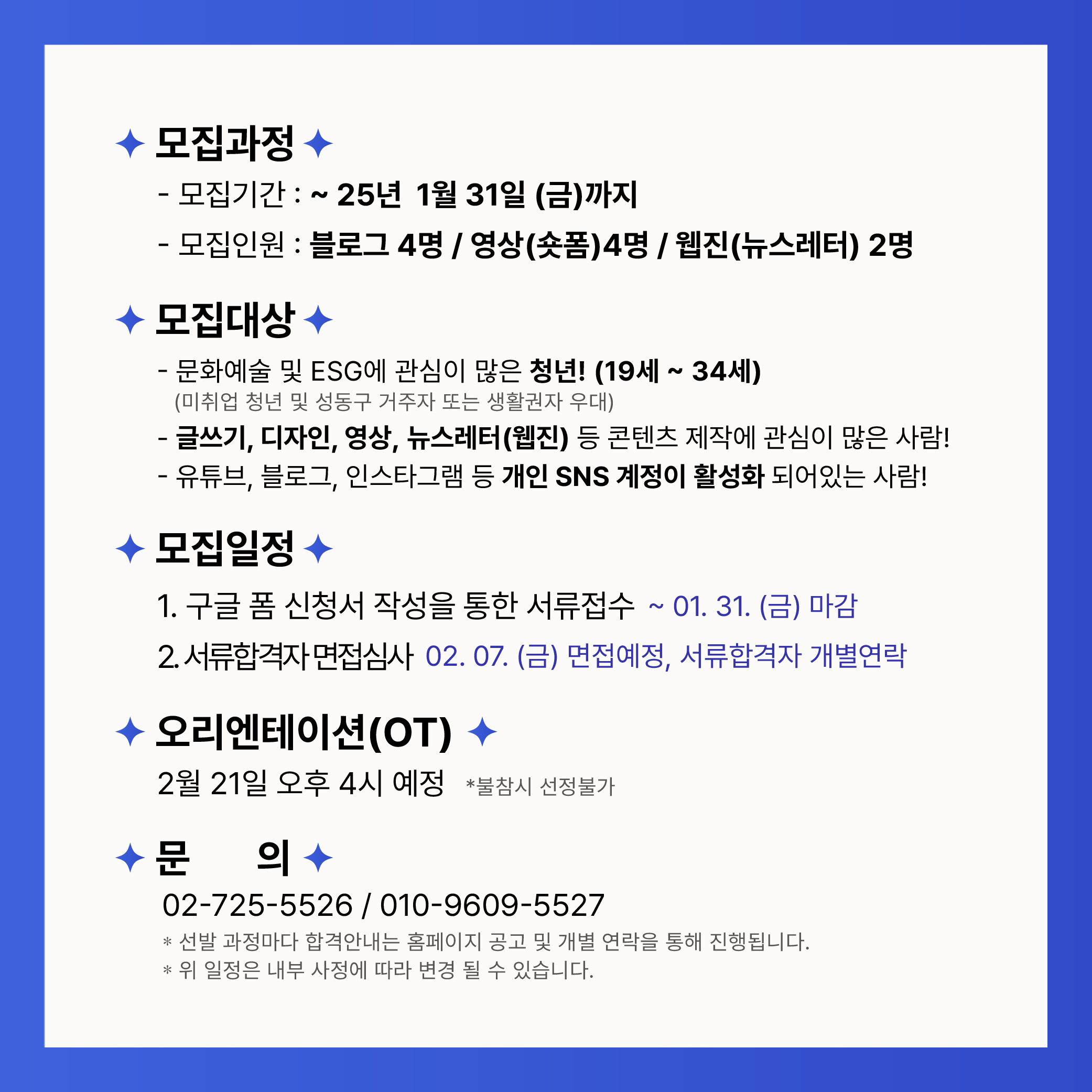 ✅ 오리엔테이션(OT)ㅣ2월 21일 오후 4시 예정 (불참 시 선정 불가)