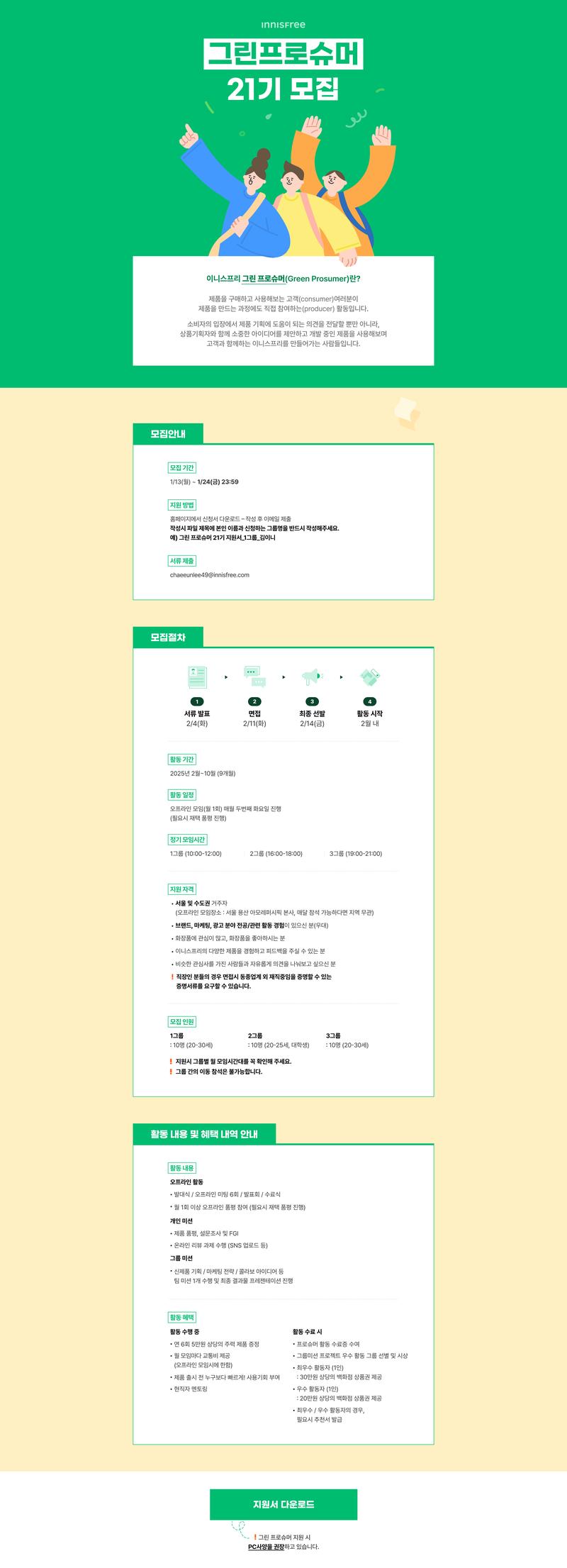 - 신청서 다운로드 ) https://www.innisfree.com/kr/ko/EventView.do?eventSeq=4034&procStat=2&channelTyp=