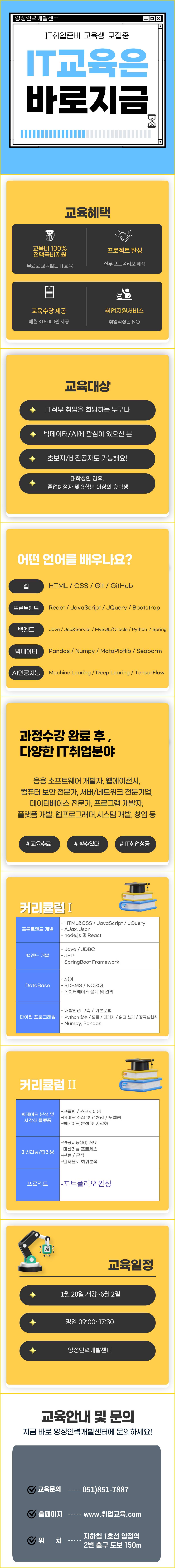 ✔️교육장소 : 고용노동부 지정 우수훈련기관 양정인력개발센터