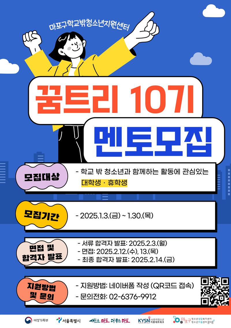 학교 밖 청소년 교육지원사업 ‘꿈트리 10기 멘토를 모집합니다! 🤗