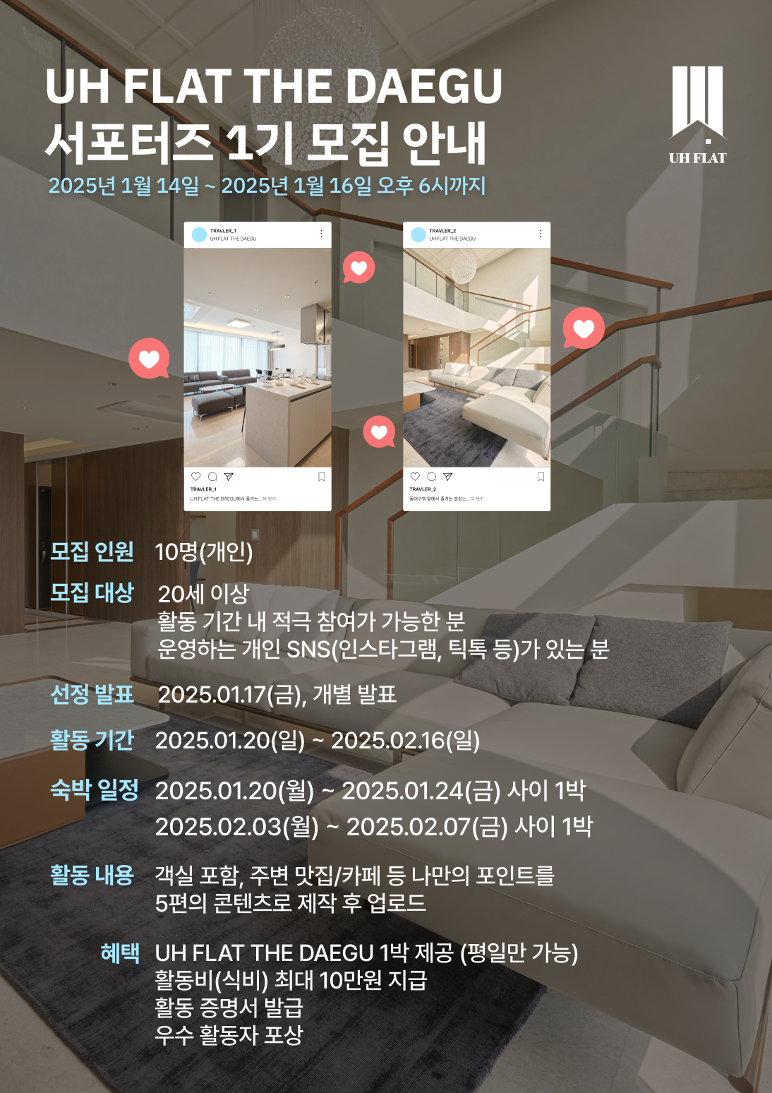 📌 신청 방법 : 인스타그램 @uhflat_marketing 계정 팔로우 후 응모폼 접수