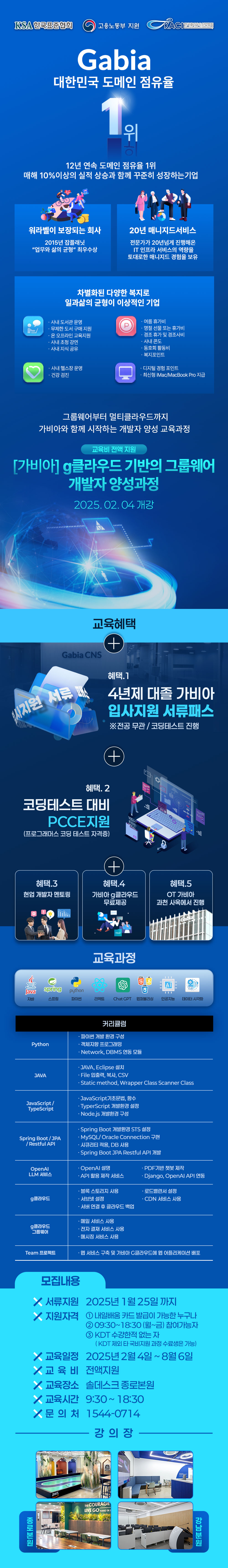 ▶[가비아] g클라우드 기반의 그룹웨어 개발자 양성과정 [1기]