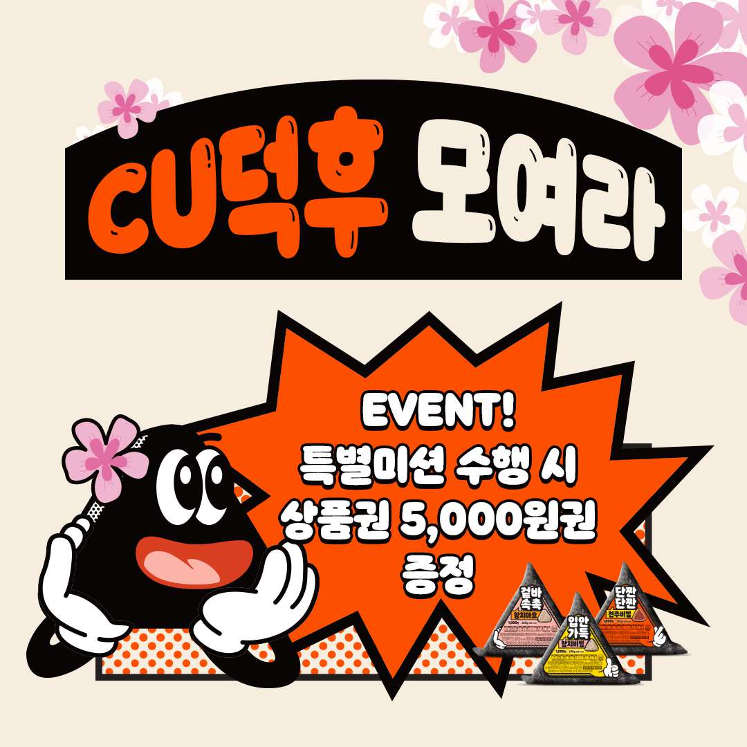 - 매주 금요일 신상데이마다 CU 신상품 체험 후 리뷰 미션 수행 및 URL 공유